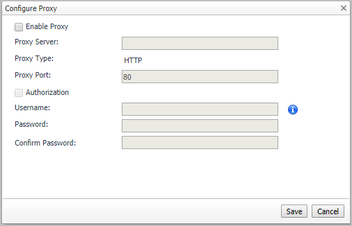 Input the host name or IP address for the Proxy Server and input the Proxy Port number. |