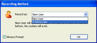 Record as a New User—selecting this option records an FTR script as a user who has never been to this Web site before. No cookies exist.
