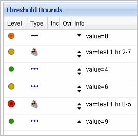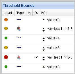 Rulettes: A rulette is a derived metric instance that represent the state of the monitoring object to which the derived metric expression applies. This column contains two sub-columns: