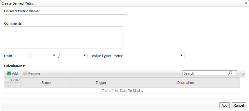 In the Create Derived Metric view, in the Derived Metric Name box, type the name of the derived metric.