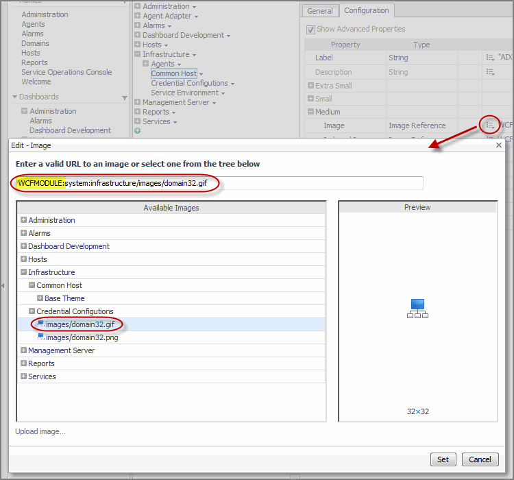 When you reference a theme-specific image in a view or icon definition, the WCFMODULETHEME: resource tag in the image URL indicates that a theme-specific image is selected. Specifying the image in the base theme instructs the system to display the image variant defined in the currently selected theme.