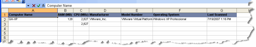 The Hardware Inventory - Excel Optimized report reports on data collected from computers logging onto the network. The report details each computer's basic hardware and is optimized for use in Microsoft Excel.