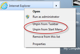 When selecting User Start Menu (Pin) or User Taskbar (Pin) with a non-English language workstation operating system, you must define a variable that defines the non-English verbiage to substitute in place of the English "Pin To..." verbiage. The value of these variables should match the "Pin to Taskbar" or "Pin to Start Menu" text on the popup menu of a program shortcut. The following variables can be defined as User Management Global Variables or as a Profile Definition Variable.