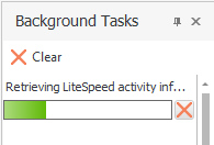 The Background Tasks pane displays processes that you selected to run in the background while you use the LiteSpeed UI Console. You can dock the pane by clicking Auto Hide or clear a process by clicking. ClosedClick here to see the Background Tasks pane.