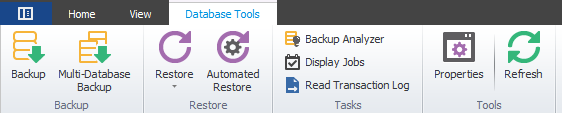 Manage LiteSpeed and native SQL Server backups and restores with a variety of advanced tools. You can also view detailed information about your backup and restore processes, including statistics on processes that fail or succeed, the amount of disk space you save, and a list of all of the jobs for a server instance or database.