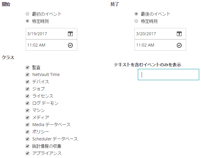 デフォルトでは、すべてのイベント・クラスが選択されています。クラスのログ・メッセージを非表示にするには、対応するチェック・ボックスの選択を解除します。