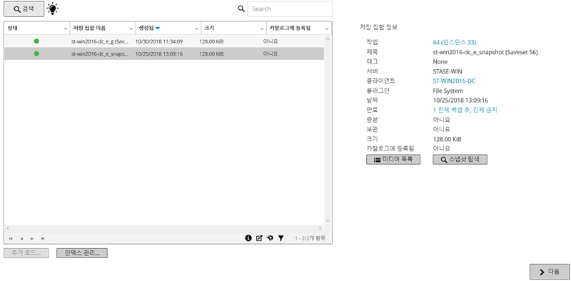 Lorsque vous sélectionnez un ensemble de sauvegardes, les informations suivantes s'affichent dans la zone Informations sur l'ensemble de sauvegardes : le numéro d'identification de la session, le titre de la session, la balise, le nom du serveur, le nom du client, le nom du plug-in, la date et l'heure de l'ensemble de sauvegardes, le paramétrage de la mise hors service, la sauvegarde incrémentielle (si elle a lieu), l'archive (si elle a lieu), la taille de l'ensemble de sauvegardes et le statut catalogué.