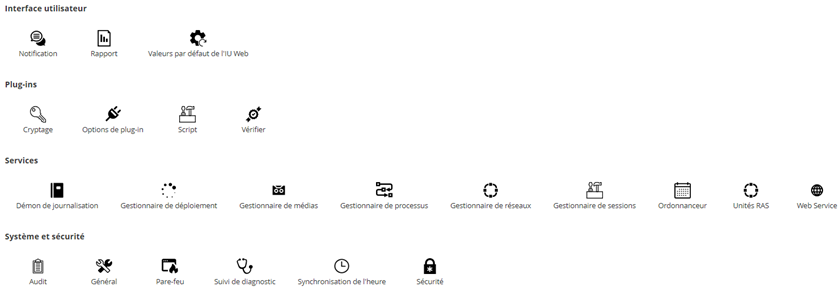 Vous pouvez configurer les paramètres par défaut de divers plug-ins intégrés et sous licence sur la page Modifier les paramètres ou Créer une session de sauvegarde. Les procédures de configuration de plug-in sont expliquées dans les guides de l'utilisateur de plug-in.