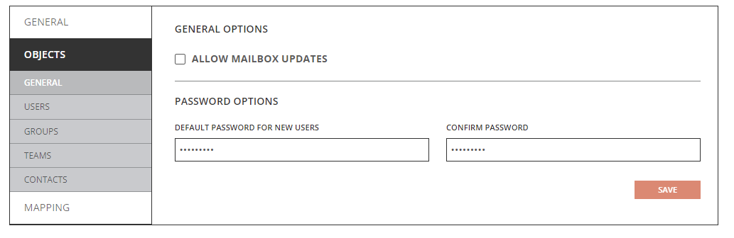 • Allow Mailbox Update - You can configure Directory Sync to update mailbox-enabled target objects via Templates under the Objects and General tab. You should also review the mapping configuration to ensure mail attributes mappings are configured correctly per your project's need to avoid unwanted mail disruption.