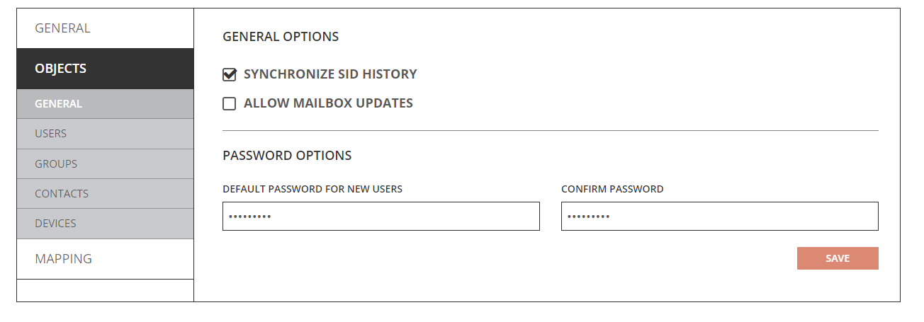 • Synchronize SID History –  Directory Sync will migrate SID-History when this option is enabled. Refer to the SID History Synchronization Quick Start Guide for additional information on how to migrate SID-History.