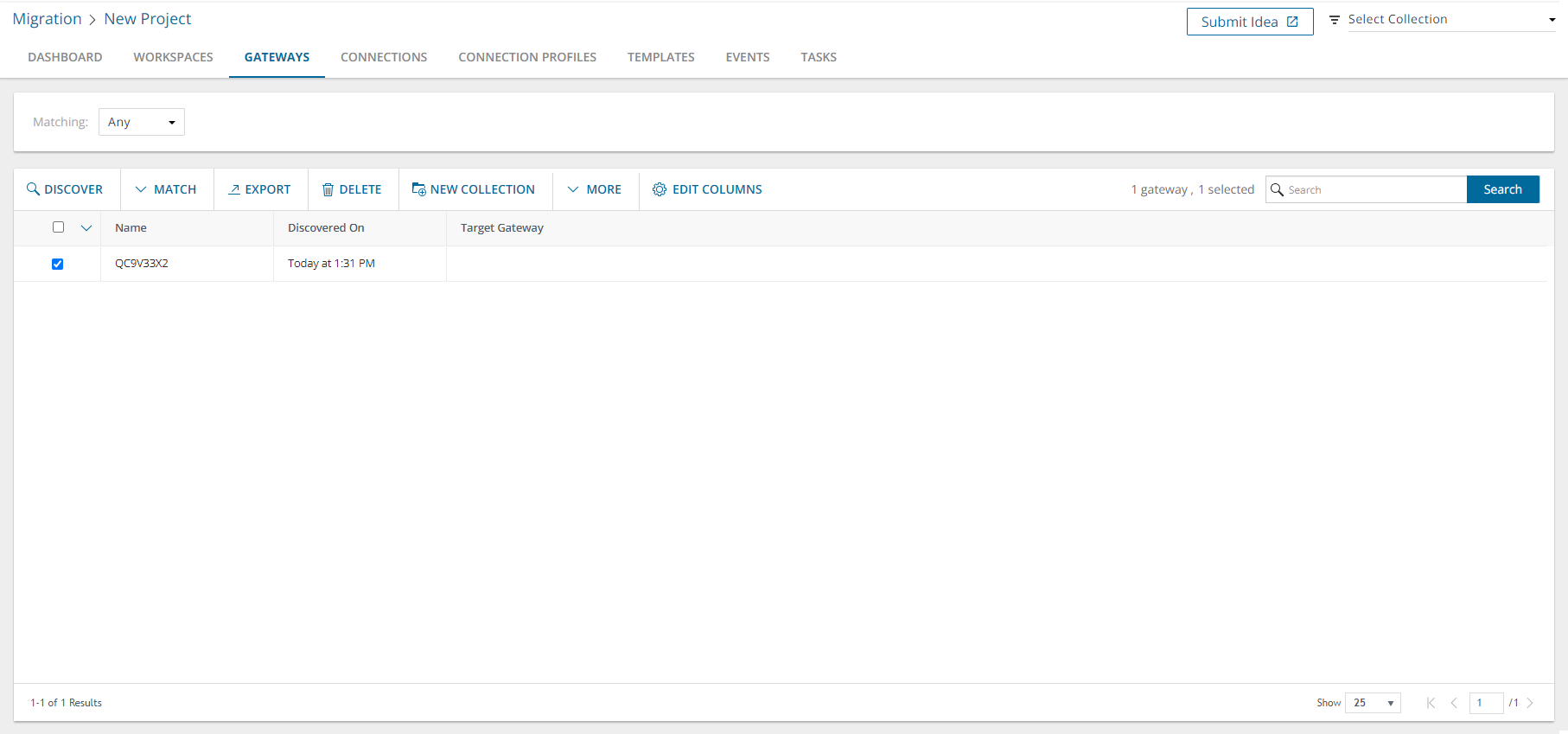 - Match - starts the New Match Gateways Task wizard. See Matching and Mapping Gateways for more information.