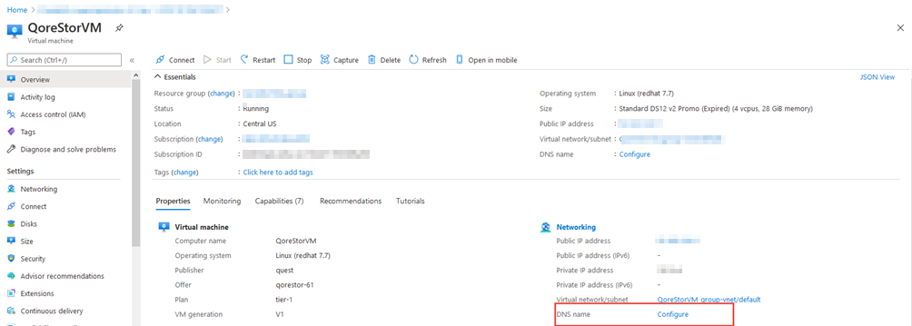 By default, the instance does not have the DNS name configured. To configure the DNS name, find the DNS name field in the Networking section, and then click Configure.