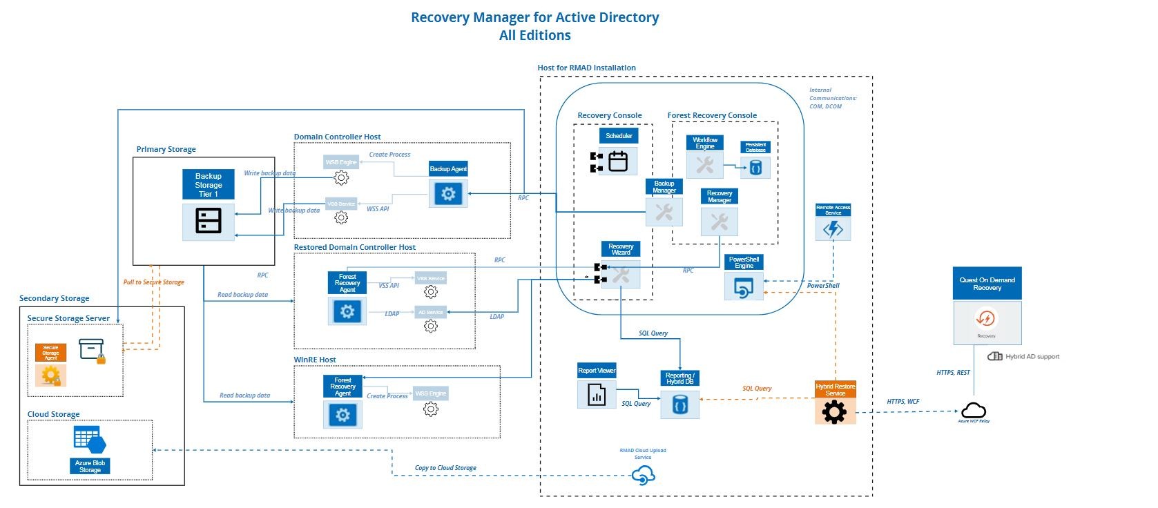 Some components in figure, may not apply to your edition of Recovery Manager for Active Directory. Refer to User Guide for your edition.