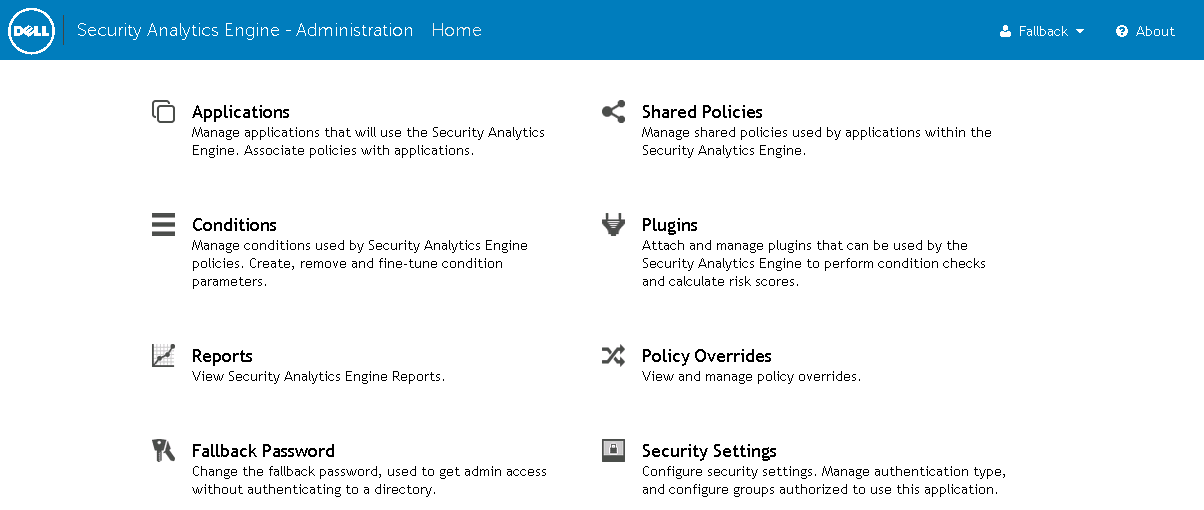 Click <Username> and select Log Out to disconnect from the Security Analytics Engine Administration web site. The Fallback account also has a New Log In option available to make it easier to switch between user accounts.