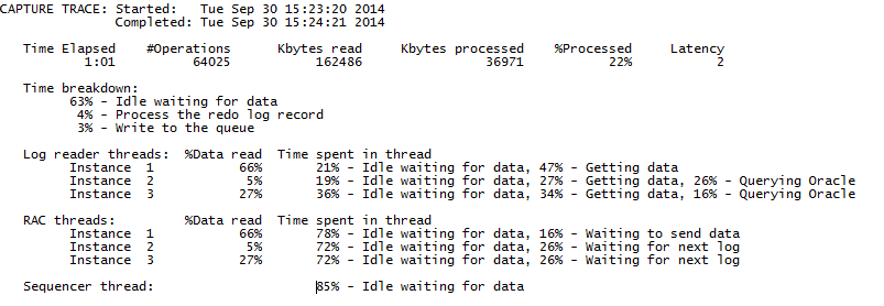 Use the trace capture command to output Capture processing and performance statistics to a trace file.