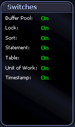 Note: The Buffer pool, Lock, and Sort switches are preselected and cannot be changed. The home pages require data supplied by these switches.