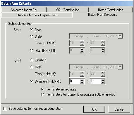 Specify to start the Batch Run after it has been running for a specified number of hours and minutes.