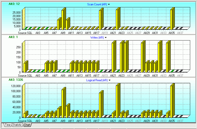 A performance forecast based on the retrieved Estimated I/O Cost value. If the Performance Projection value is greater then one, then it is forecasted that the SQL alternative may give a better performance.