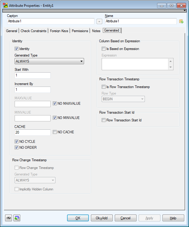 If the sequence is not defined in the model, select the Base Object is not in List checkbox and write the sequence to box Base Object Name (start with text SEQUENCE).