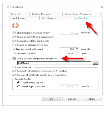 Is there any other way to change the creation of the LiteSpeed temp data to not use the USERPROFILE or Default C drive ?