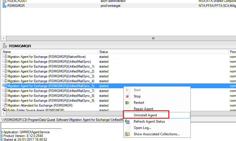 2) Right click the specific agent instance and name and choose Uninstall Agent