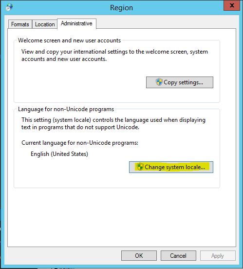 2.) Click on Change date, time or number formats | Administrative tab to set the system locale: