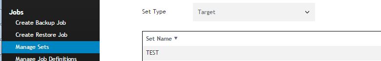 Backup target set = test (Target set must be defined in NVBU in managed sets )