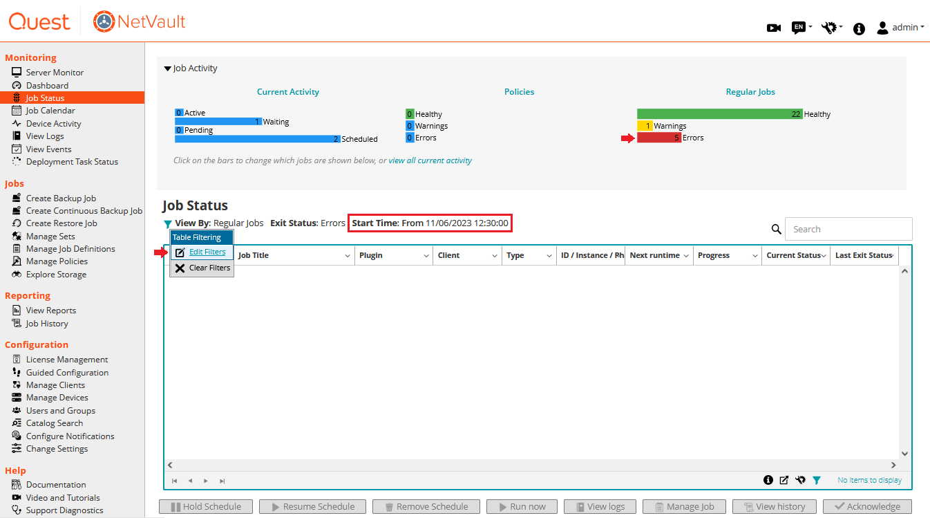 8) You can now acknowledge all errors and confirm the Errors count for Regular Jobs goes back to zero.