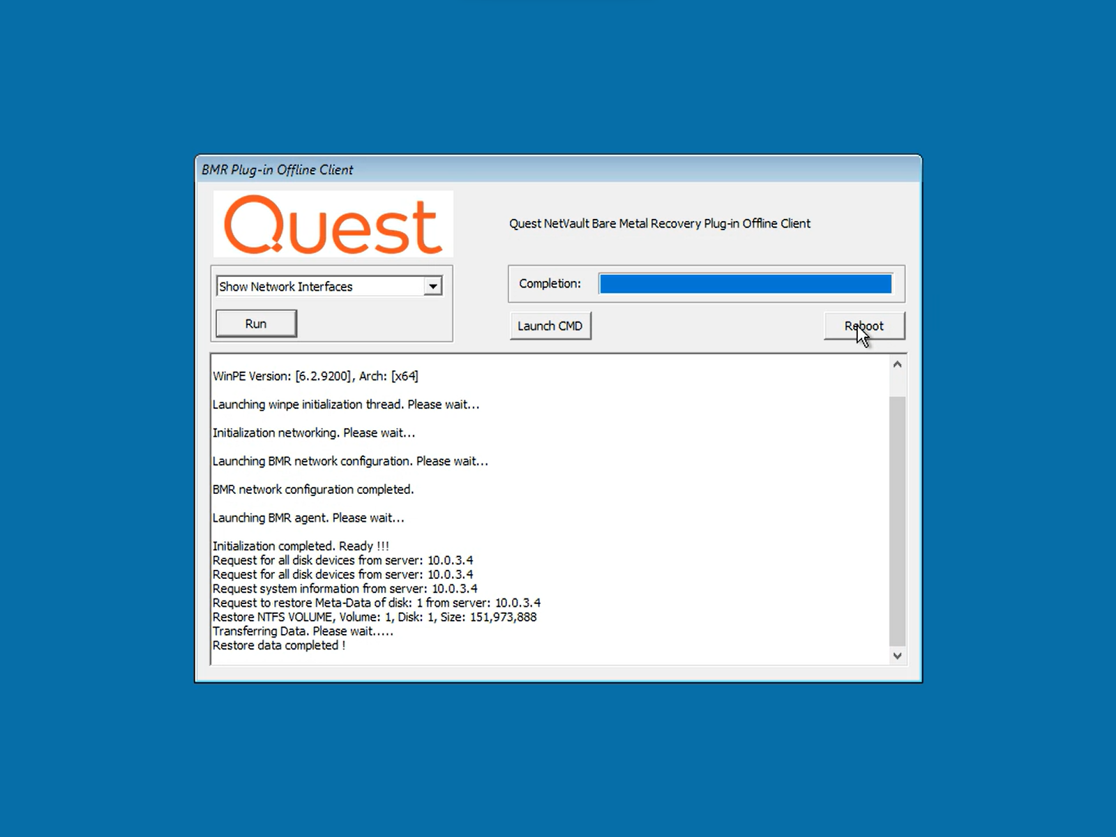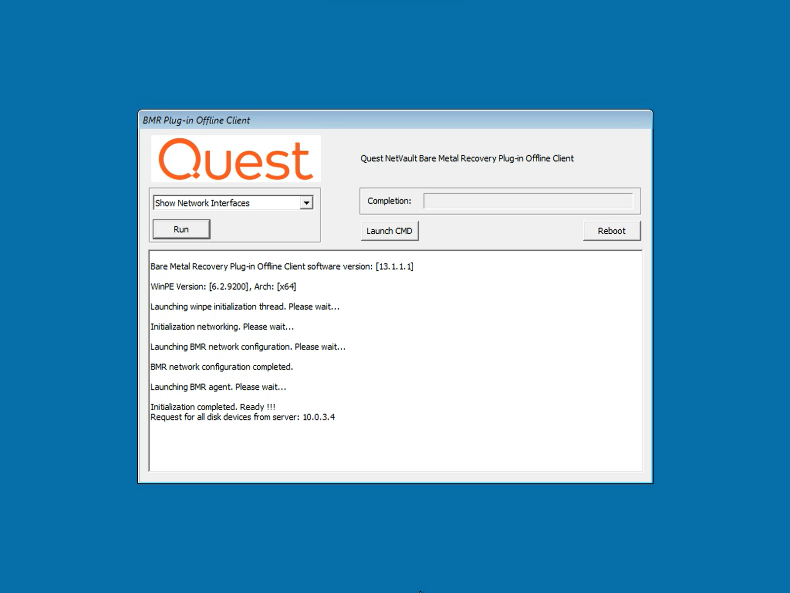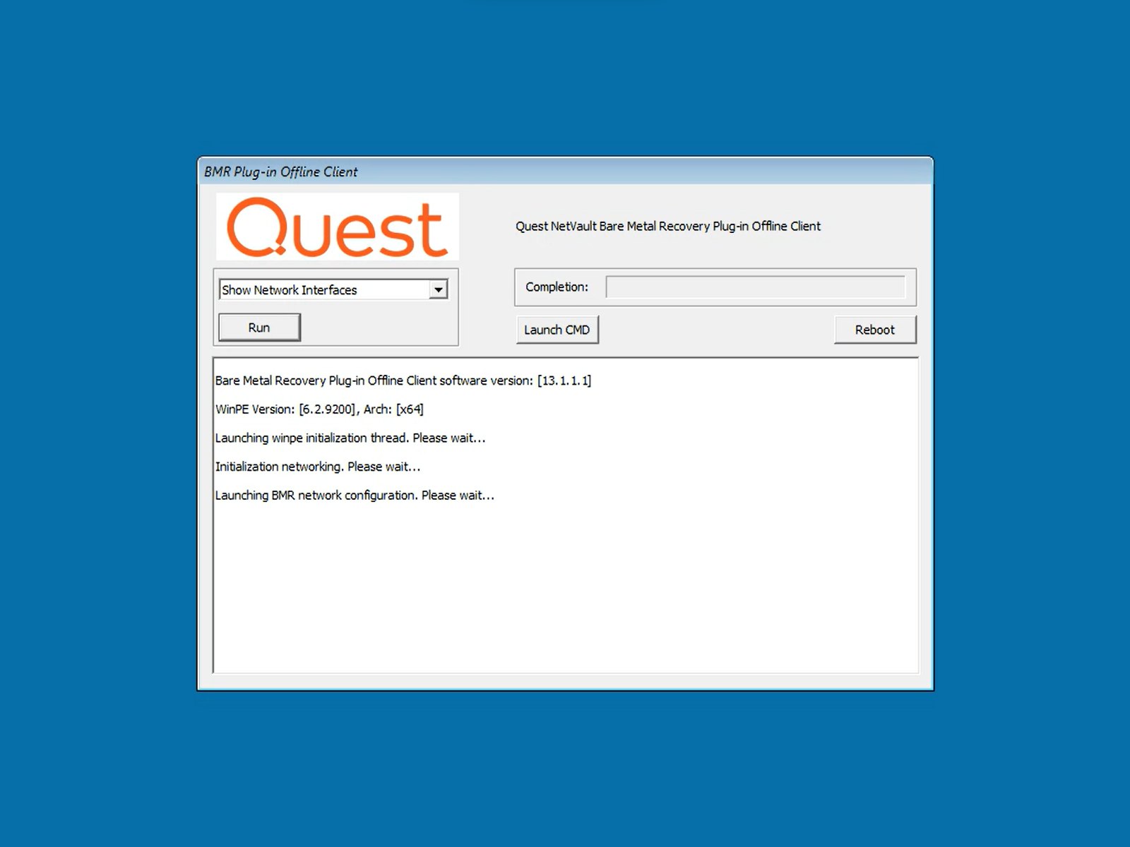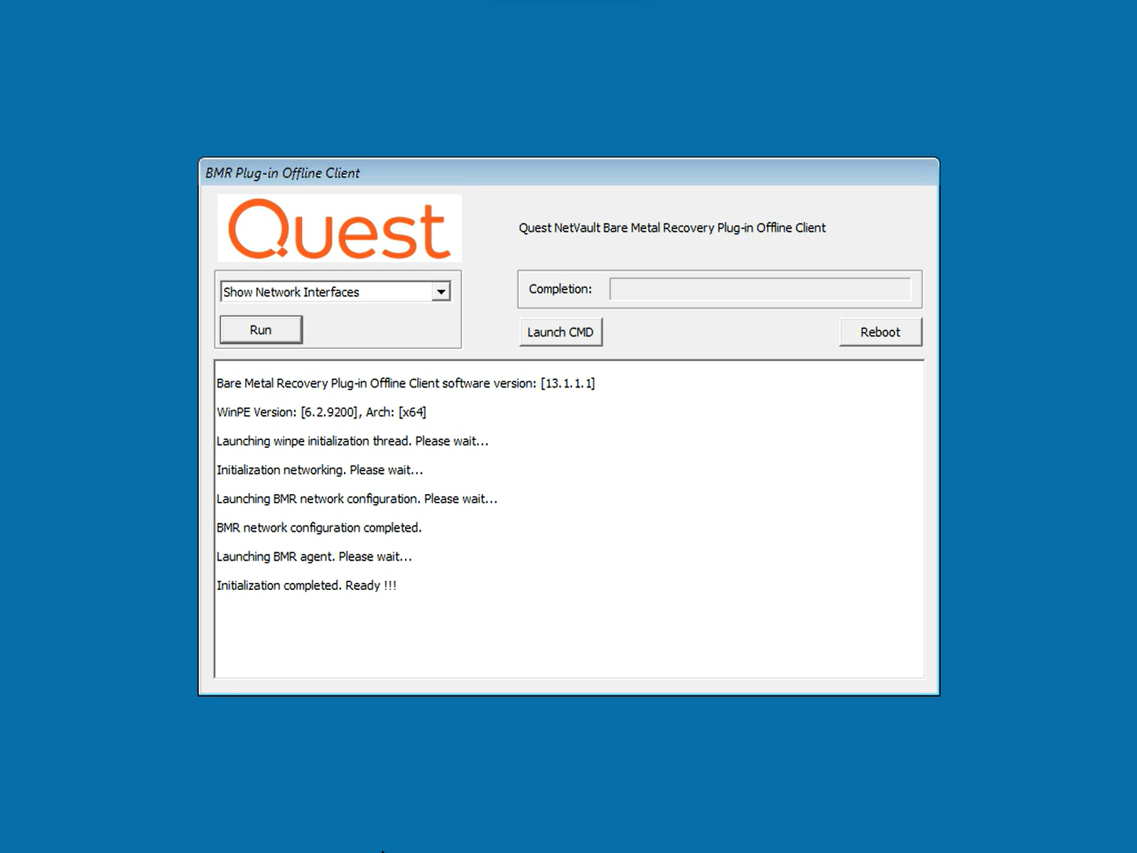 - WinPE will load and launch the BMR Plug-in Offline Client.