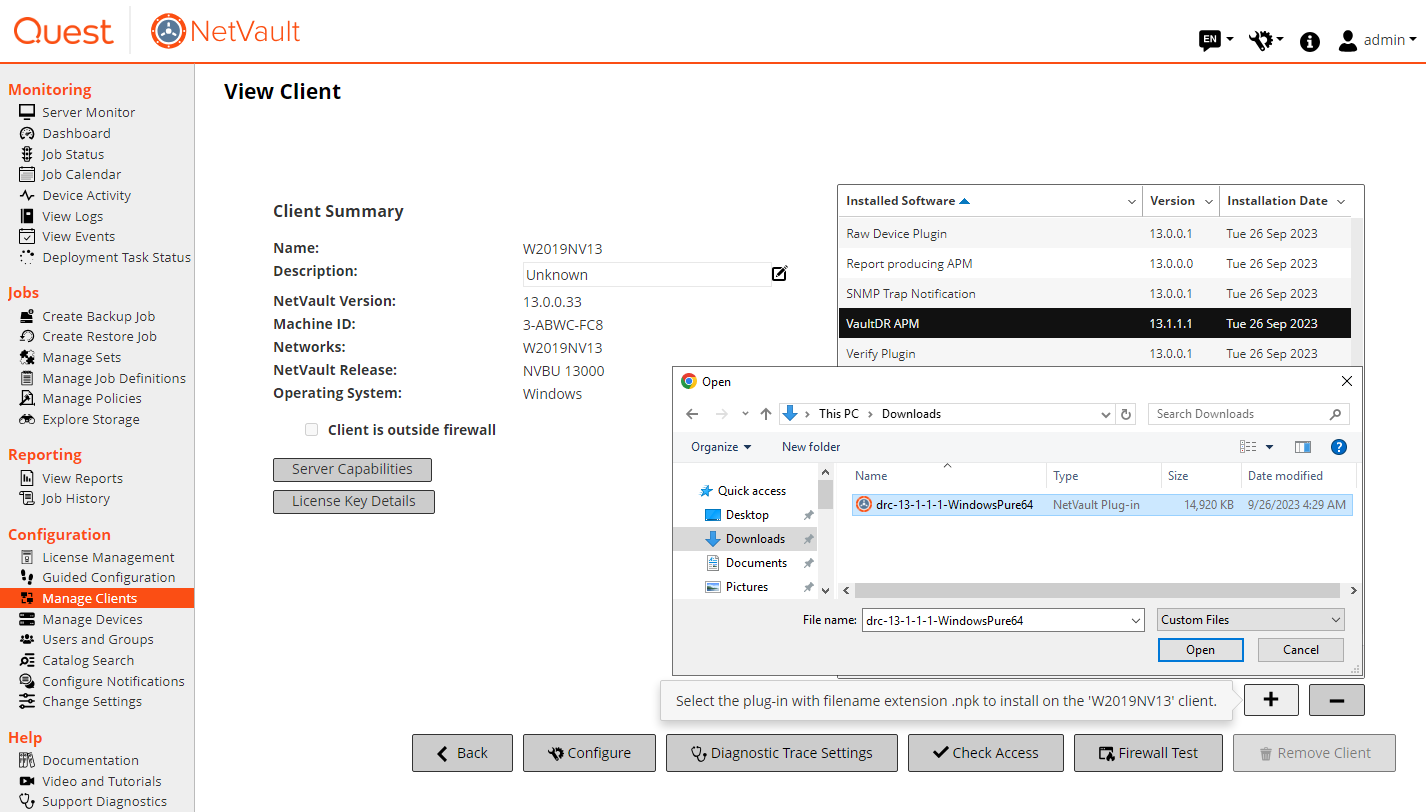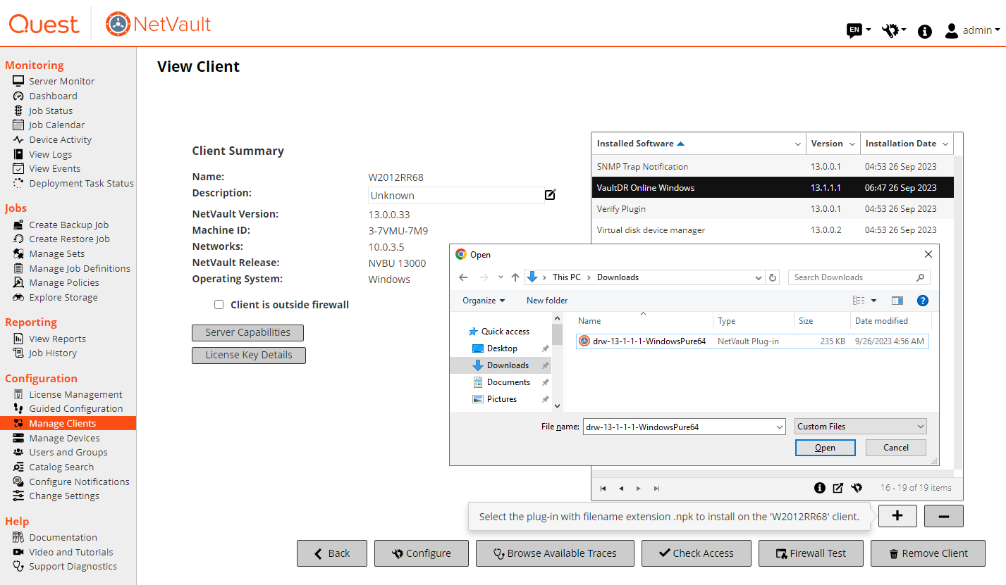 - Download NetVault Bare Metal Recovery Plug-in Live Client for Windows from Quest Support Portal. Make sure that the downloaded file is supported by your NetVault Client version and system architecture.
