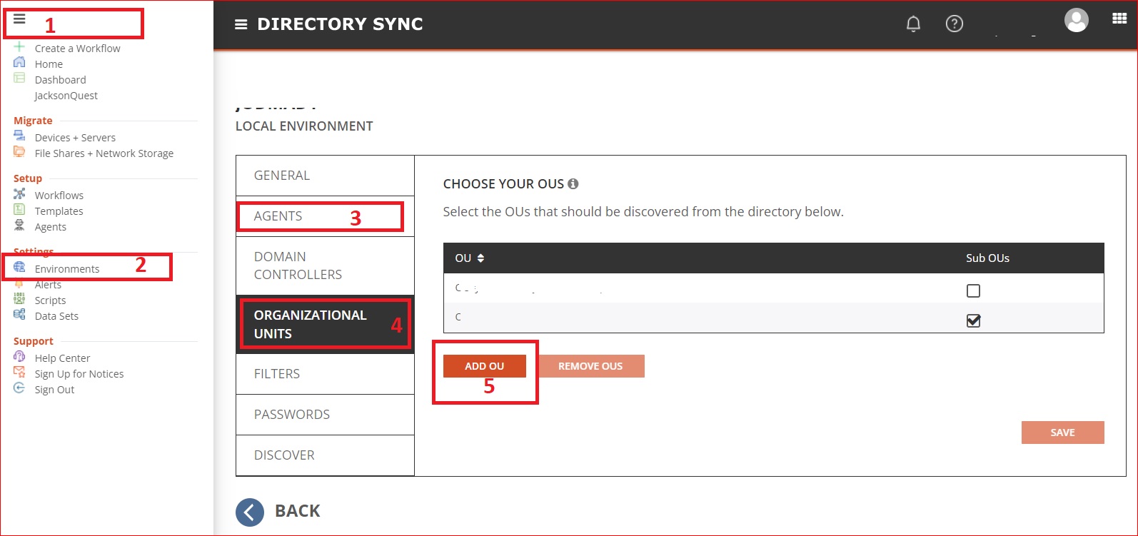 Environment>(Select the respected Environment)> Settings> Organizational Units > Add (then from the Directory select the OU that you are required to work on)