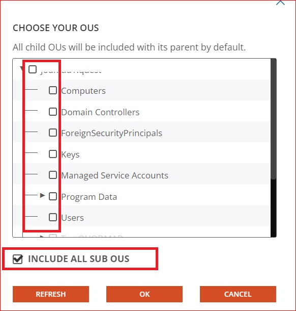 The checked Organization Unit (OU) to be added to the workflow is checked from the Environment at the sub-OU.