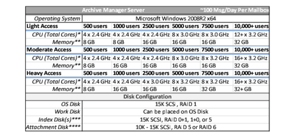 Index Disk(s)***: The performance of the index disk will greatly impact the general performance of the product. For best results, use dedicated attached storage. New indexing technology allows the ability to span the index across multiple disk for both performance and fault tolerance.