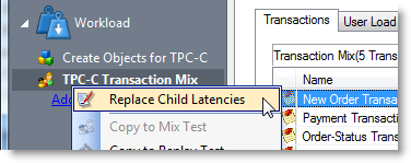 Latency is delay added to the execution of a transaction to control how fast transactions are submitted to the system-under-test. You can use the Replace child latencies dialog to quickly modify latency for all the direct children of a test. For example, when an Oracle trace file is imported, the latencies are automatically set to replay the transactions at their original rate, but changing these to a set value can replay the transactions in a shorter period of time.