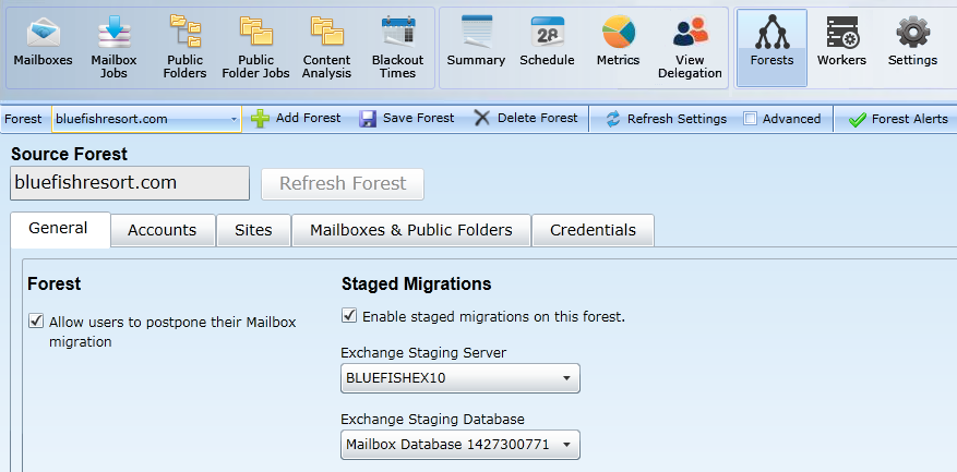 | Tenant Forest (Office 365) Configuration | Mailboxes & Public Folders Tab |
