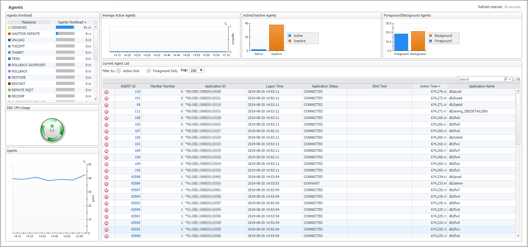 CF Locks Collection CF Memory Pools Collection CF Resource Usage Collection Current Agents Details Collection Agents Summary Collection Current Locks Wait Collection Database Bufferpools Summary PS Collection Database Configuration Collection Database Tablespaces Collection Database Tablespaces Summary Collection Database Usability Collection Database Parameters Collection Database Instance Parameters Collection Database Instance Registry Variables Collection Database Tablespaces BP Collection FCM Activity Collection FS DB Storage Collection FS DB Storage Summary Collection FS Instance Storage Collection FS Storage Collection FS Storage Summary Collection General Activity Collection HADR Activity Collection Host Properties Collection OS General Collection Instance Activity Collection Instance General Collection Instance Nodes Collection Instance Usability Collection IO Activity Collection License Details Collection Log Activity Collection Log File Collection Log Message Collection Messages Count Collection Monitor Switches Collection OS DB2 General Process Collection Partition Tablespaces Summary Collection Partition Usability Collection pureScale Alerts Collection Top SQLs Collection Query Agents Details Collection Database Partition Activity Collection DB2 Partition Subcategories Wait Collection History Locks Wait Collection History Locks Summary Collection Instance Memory Collection Instance Memory Pool Collection Instance Memory Summary Collection Instance Memory Total Collection Database Memory Collection Database Memory Pool Collection Database Memory Pool DB Collection Database Memory Summary Collection Database Memory Total Collection Database Buffer Pools Collection Database Tables Collection Database Partition Backup Collection Database Tables Global Collection Database Applications Collection