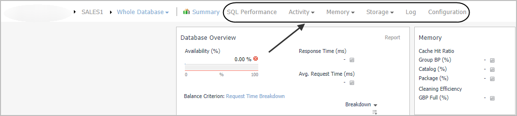 SQL Performance page provides the ability to investigate the activity and resource consumption of a selected database or database partition.