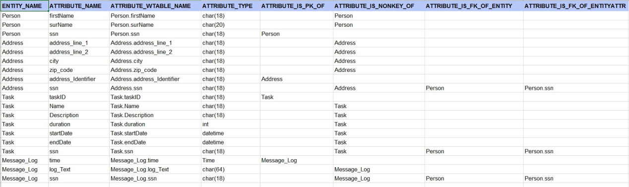 - DM Information (ENTITY_ATTRIBUTES, RELATIONSHIPS)