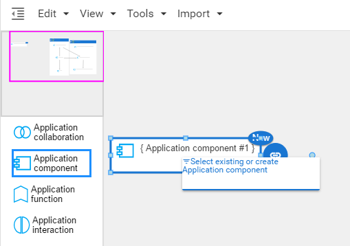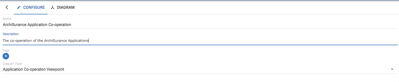 The diagram contains all the objects that were imported into the model, that are allowed on the Application Co-operation Viewpoint, therefore only new objects can be added.
