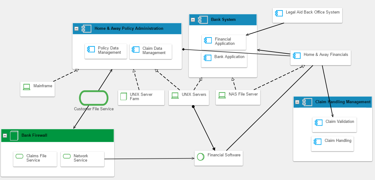 To modify the diagram contents, users can use the search function to create queries and find objects within the model - these can be simple, such as 'Name contains claim', or be more complex with multiple query rules defining the dataset the user is looking for. Multiple searches can be performed to complete the dataset.