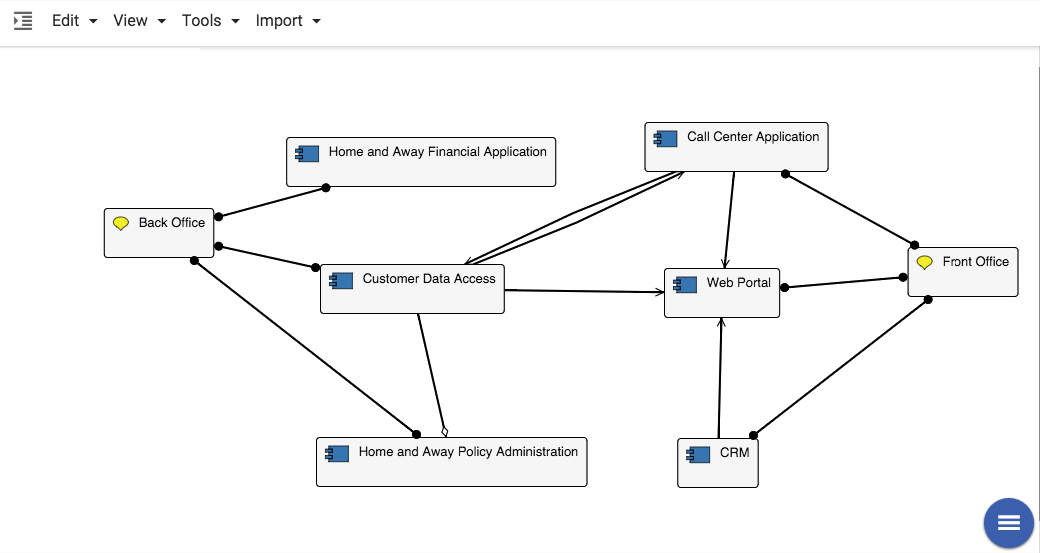 Each diagram type is pre-defined with the object types and relationships that the diagram supports.