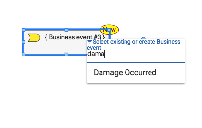 Notice the 'New' flag that displays the status of the symbol - this will disappear, either when the symbol is named and the diagram is saved, or an existing object is chosen for this symbol.
