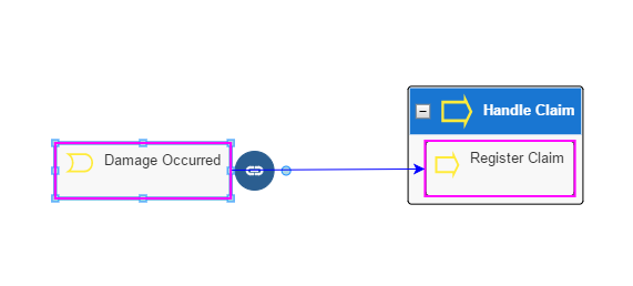 Click the link icon, and drag the relationship line to the 'target' symbol - both symbols will be highlighted.