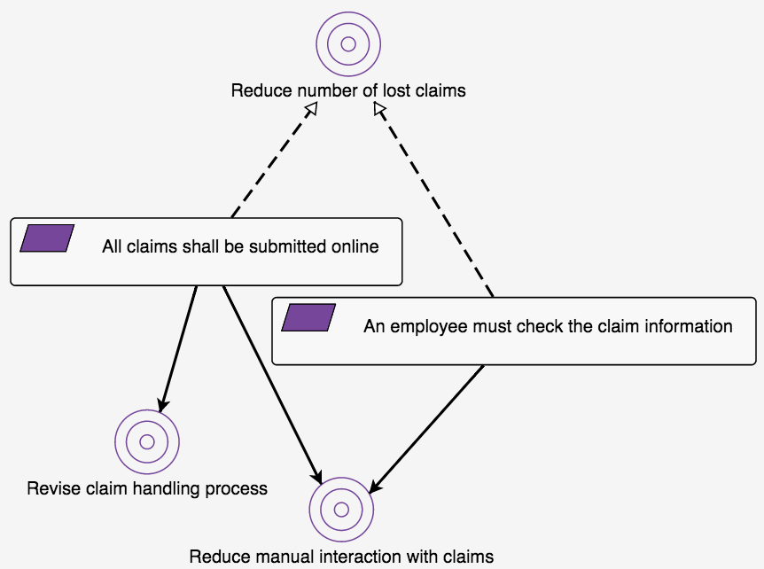 This viewpoint is typically used after goals and sub-goals have been defined, and are used to show the impact that goals have on one another, so that conflicts can be resolved.