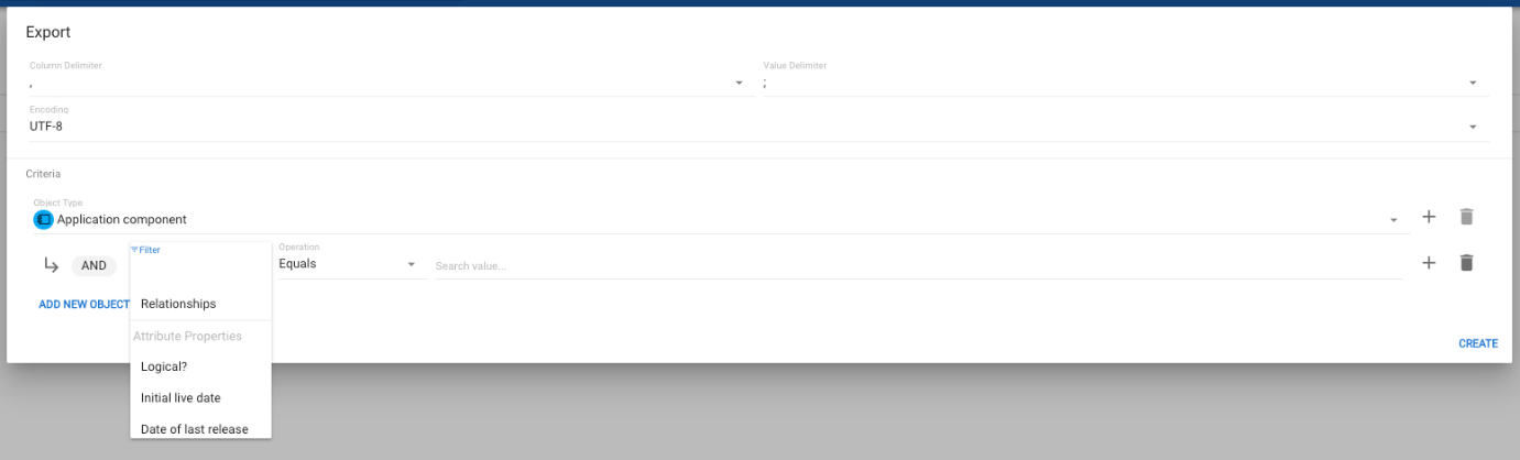 4. You can select a single object type or multiple and also define further criteria e.g. status equals or has a relationship with object X