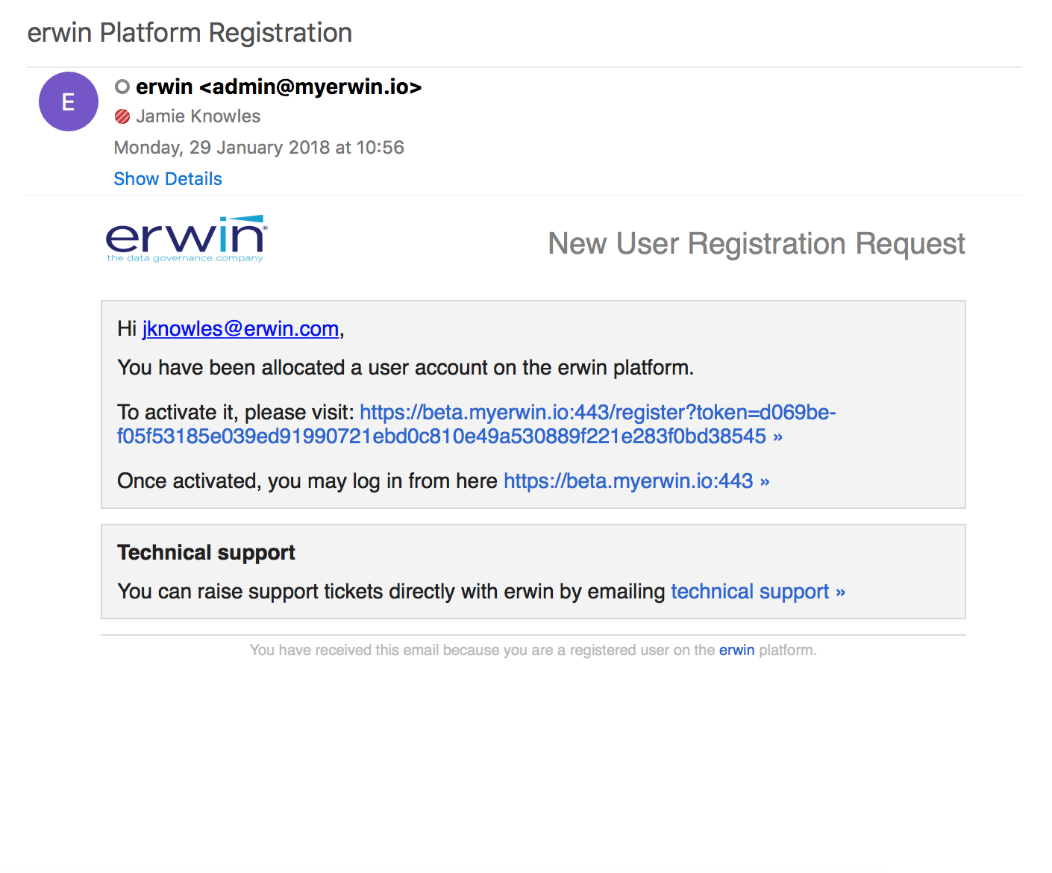 This sends an activation email to the user which asks them to visit a temporary registration link
