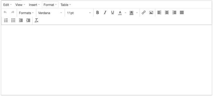 2. You will then be provided with a Rich Text Editor allowing you to format your text as well as insert pictures, links and tables.