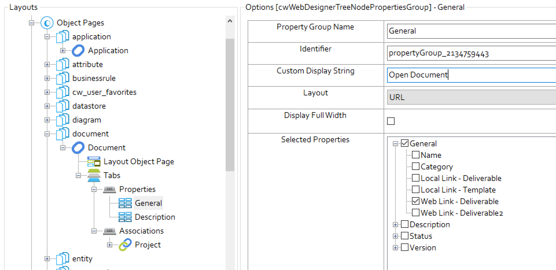 5. Open Evolve Designer and select the check box of the modified Object Property type: