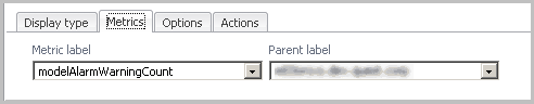 The Metrics tab displays the metrics you have selected to appear as a Metric label. If the chart contains metrics from more than one parent, the parent label also appears. For more information, see “Grouping Metrics with Many Parent Hosts” in the Foglight User Help.