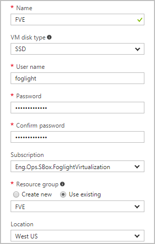Select Use existing, and then select an existing resource group from the drop-down list. |
